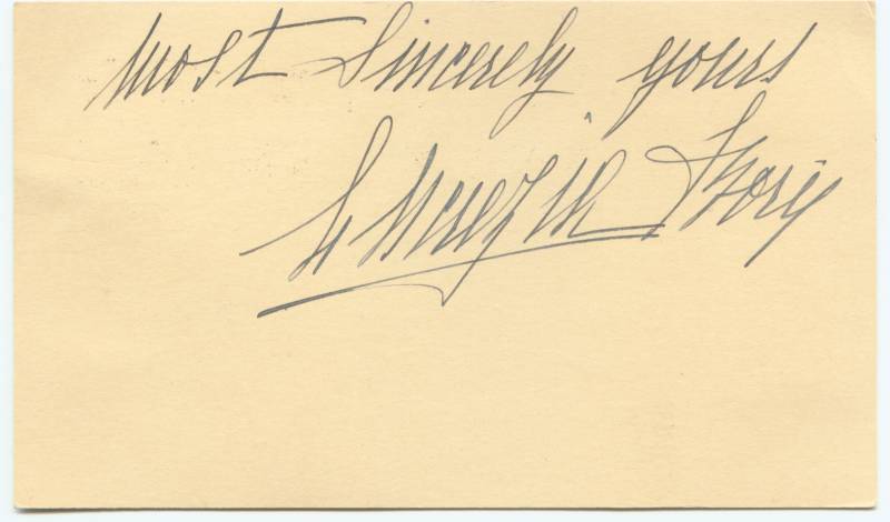 Photographic pioneer, inventor of the "Kodak," the first hand-held, celluloid film camera in 1888. Signature on paper, "Geo. Eastman."