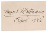 Margaret Matzenauer (1881-1963) was a Hungarian-born mezzo-soprano singer with an opulent timbre and a wide range to her voice. For twenty years, she was with the Metropolitan Opera and performed key Italian and German operas in both Europe and the United States. This card is boldly signed, "Margaret Matzenauer" and dated August 1922.
