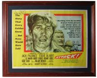 This poster measures 33" x 27" framed. It features an illustration of Jack Palance and Eddie Albert surrounded by text that reads, "The Story That Every Soldier Knew...But None Would Dare Tell!" and "Marching with the handful of great battle pictures...no "phony" glory, no candy-coated sentiment-but the raw naked guts of war grinding at you head-on like a ten-ton tank!" The stars and co-stars are printed under the illustration along with a logo for the movie. An additional line of text is printed below the logo that reads,"...the story of the flash-fused, fouled-up company the army called "Fragile Fox"!