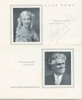 Debuted at the Met in 1931, and skyrocketed to the highest echelon of opera singers, and was a principal soprano at the Met for the next 30 years. Program for a performance of "Lucia di Lammermoor" at the Mosque Theater in Newark, NJ, on March 28, 1935. Signed by Pons next to her portrait in the program.
